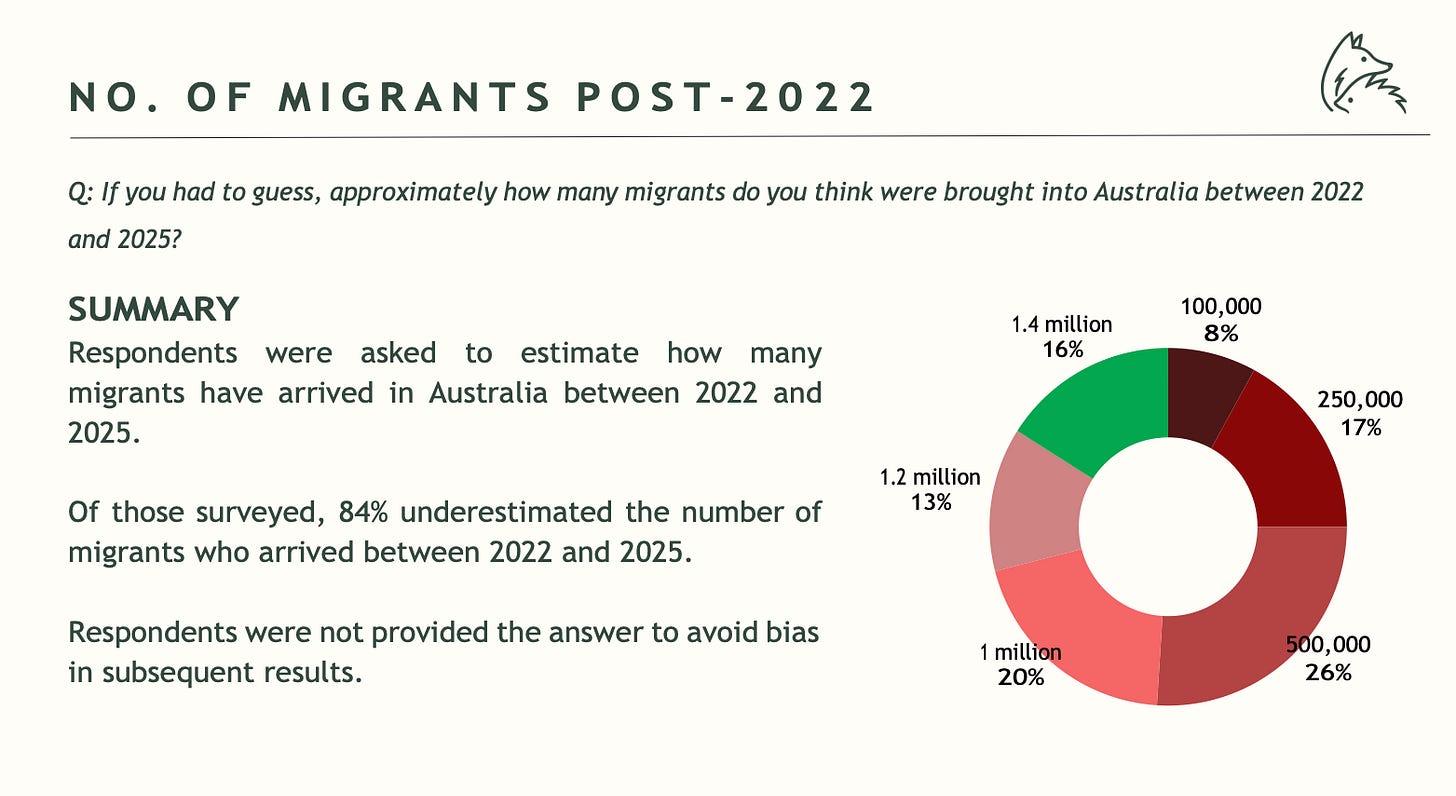 So we asked Australians how many migrants they thought were brought into Australia between 2022 and 2025.